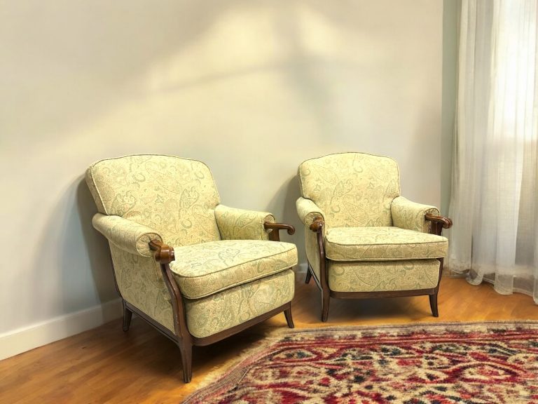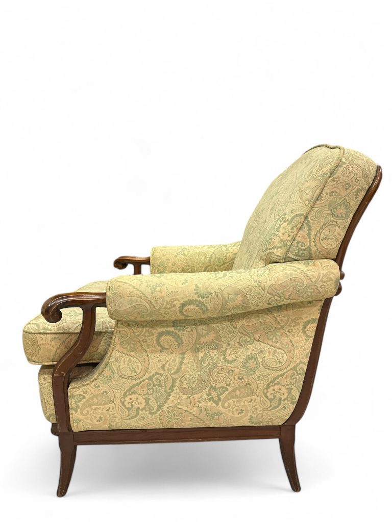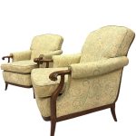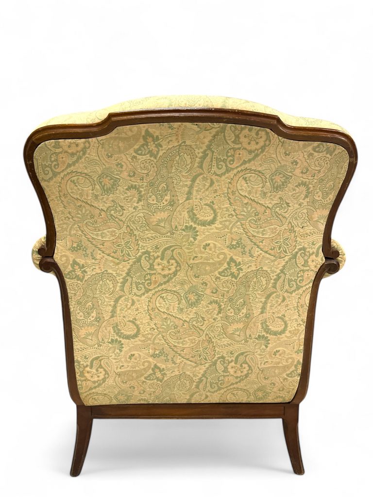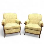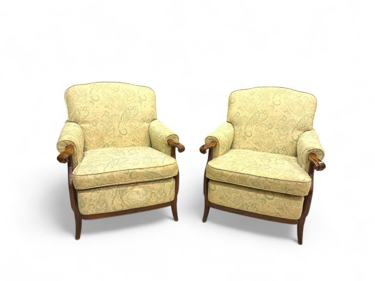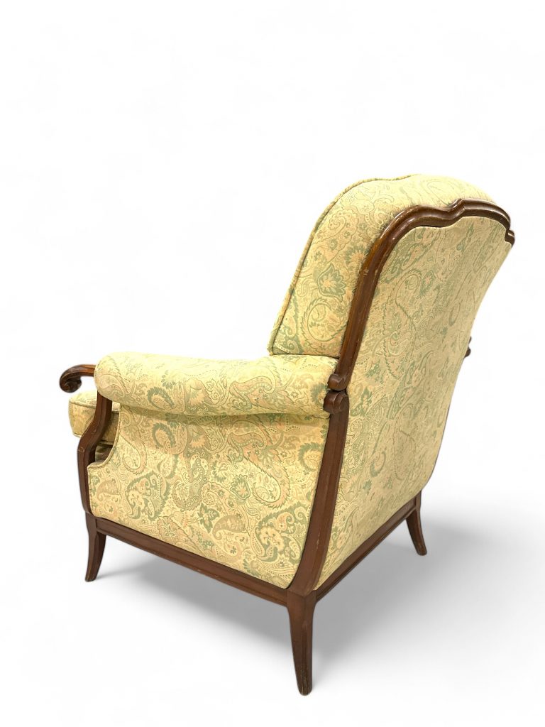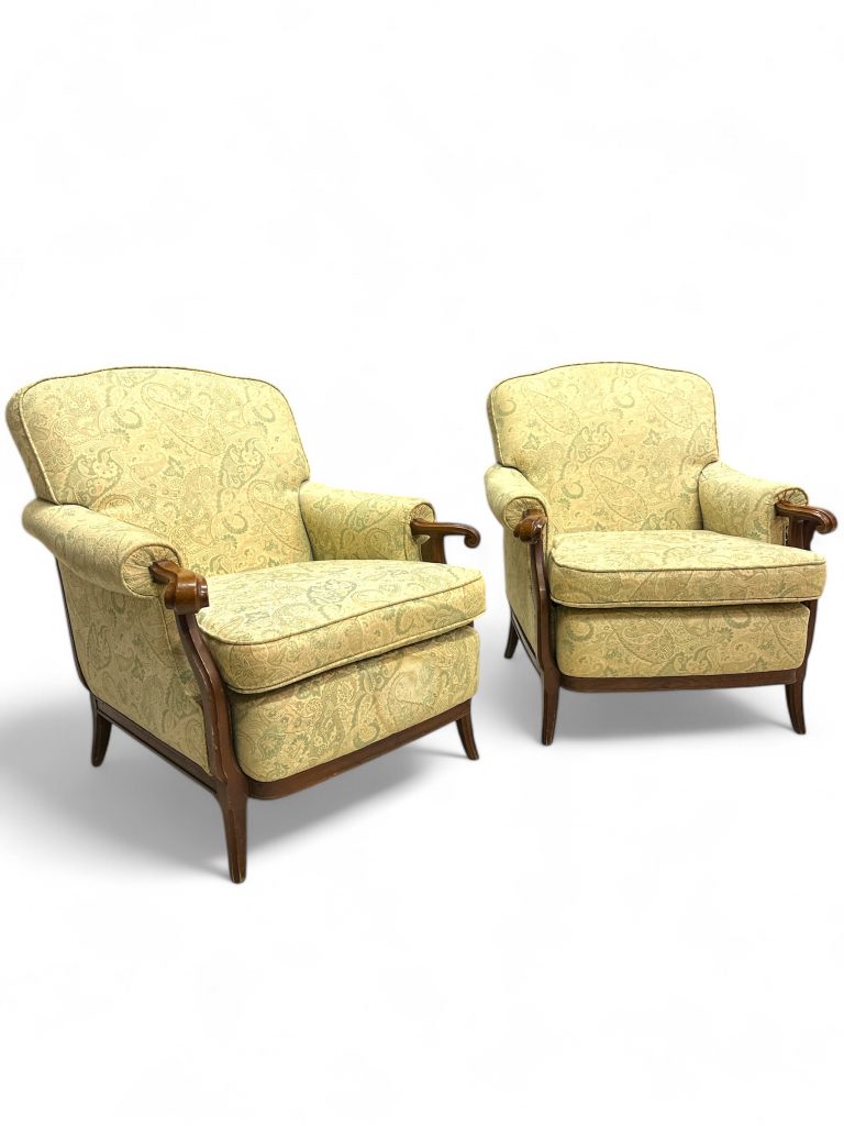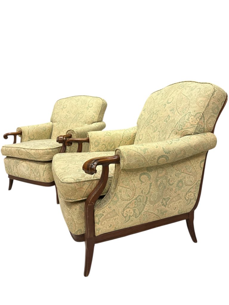 • Nome del prodotto: Coppia di poltrone vintage in legno massello con rivestimento damascato.